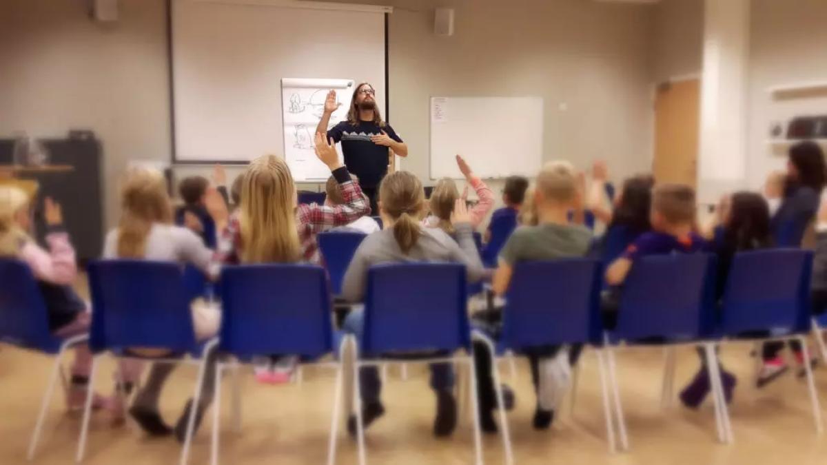 NB! Det er ønskelig at alle elevene sitter på hver sin stol, ikke på benker, i trappeamfi eller på gulvet.